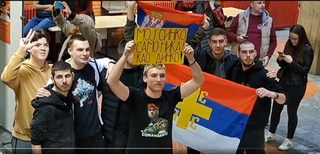 Mladići koji su blokirali fakultet su nosili srpske zastave, a jedan od muškaraca koji je blokirao Filozofski držao je transparent na kojem je pisalo „Moj sinko samo nikad kao Dinko“ i imao je majicu sa likom Milorada Ulemeka Legije, nekadašnjeg komandanta Jedinice za specijalne operacije koji je osuđen za ubistvo premijera Srbije Zorana Đinđića. Inače, Đinđić je bio profesor na novosadskom Filozofskom fakultetu, a ulica u kojoj se nalazi fakultet nosi njegovo ime.