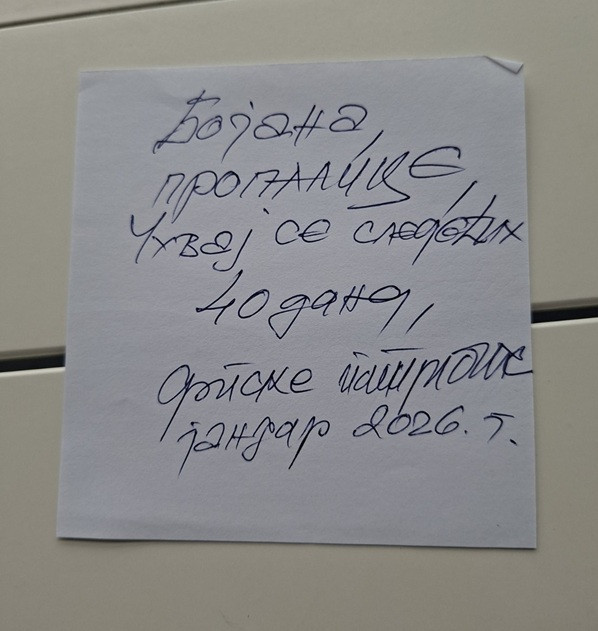 U pismu, koje je rukom pisano, nalazi se poruka: „Bojana propalice, čuvaj se narednih 40 dana, Srpske patriote, januar 2026. godine“.