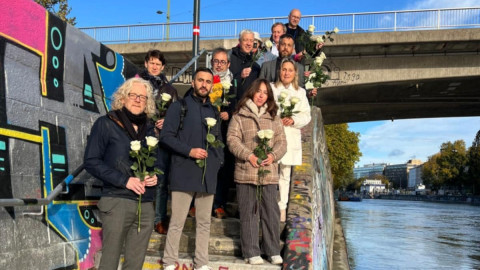 Međunarodne medijske organizacije u Beču položile 16 belih ruža u Dunav za žrtve pada nadstrešnice u Novom Sadu